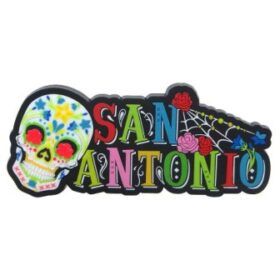 MGR-SA6248-Rubber Script Magnet Rubber Script Magnet, approx. size 1.5 x 6”, approx. size 1.5 x 6”, Sugar Skull, San Antonio, TX