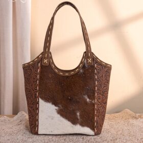 Pricing available for wholesale members onlyTR199G-8250TN Trinity Ranch Genuine Hair-On Cowhide Tooled Concealed Carry Tote
