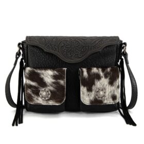 TR203-8360BK- Trinity Ranch Genuine Hair-On Cowhide Tooled Collection Crossbody