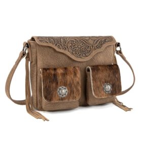 TR203-8360KH-Trinity Ranch Genuine Hair-On Cowhide Tooled Collection Crossbody