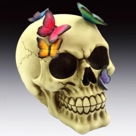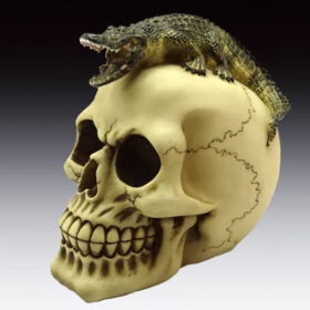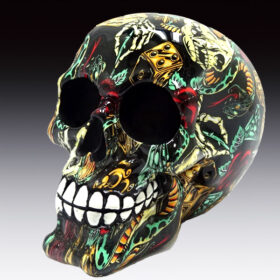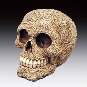 D10958-TOOLED SKULL WITH TURQUOISE INLAY