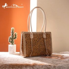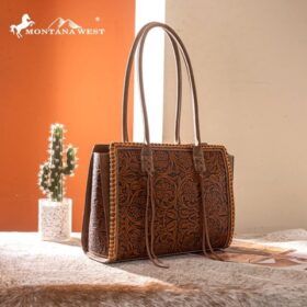 MW1355G-8317BR- Montana West Tooled Concealed Carry Tote -BR
