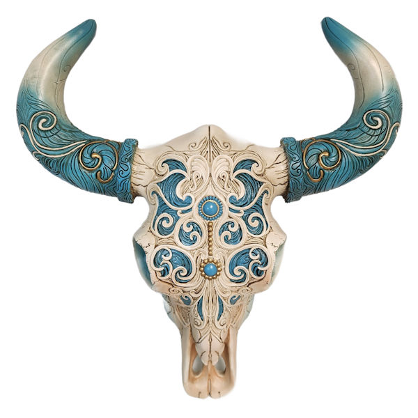 D10959-TOOLED SKULL WITH TURQUOISE HORNS