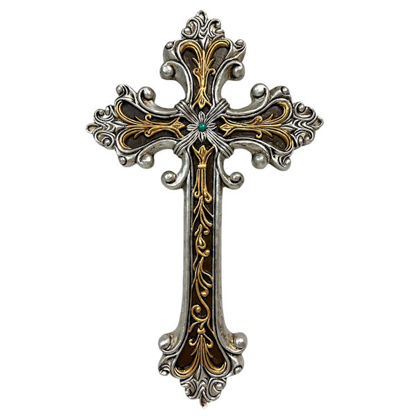 D14077-GOLD AND SILVER SCROLLS CROSS
