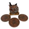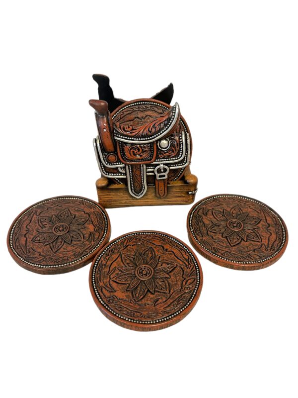 D14257-BLUE BROWN TOOLED LEATHER WITH BLUE TASSEL COASTERS