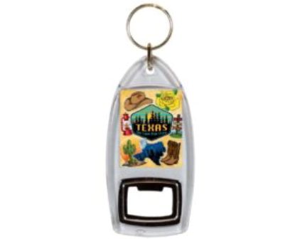 Collectible Texas souvenir Show your state pride with this multifunction keychain and bottle opener. Made from sturdy metal and acrylic.