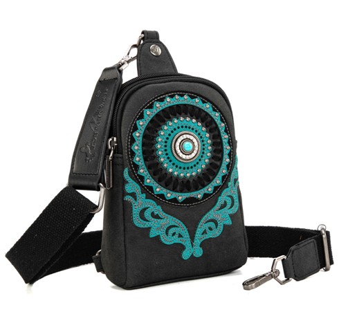 Made of PU leather , this western sling crossbody has: