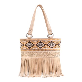 - Design: Floral tooling & tribal embroidery with Aztec conchos, fringe detail