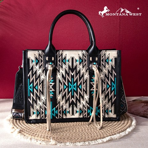 - Detachable adjustable printed Aztec canvas crossbody strap (Strap 46″)