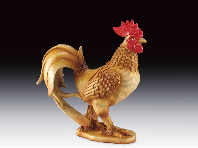 PDJ773 – ROOSTER W/BAMBOO WINGS, WOOD-LIKE CARVING