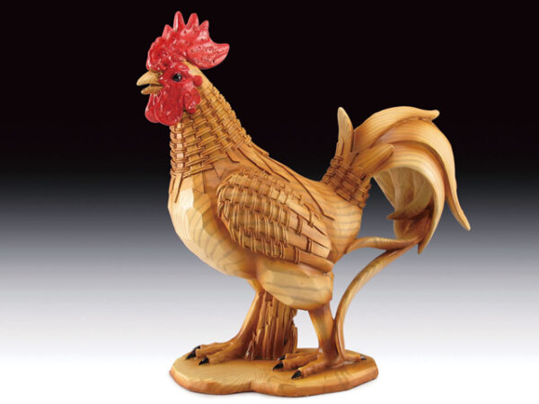 PDJ774 – ROOSTER W/BAMBOO WINGS, WOOD-LIKE CARVING