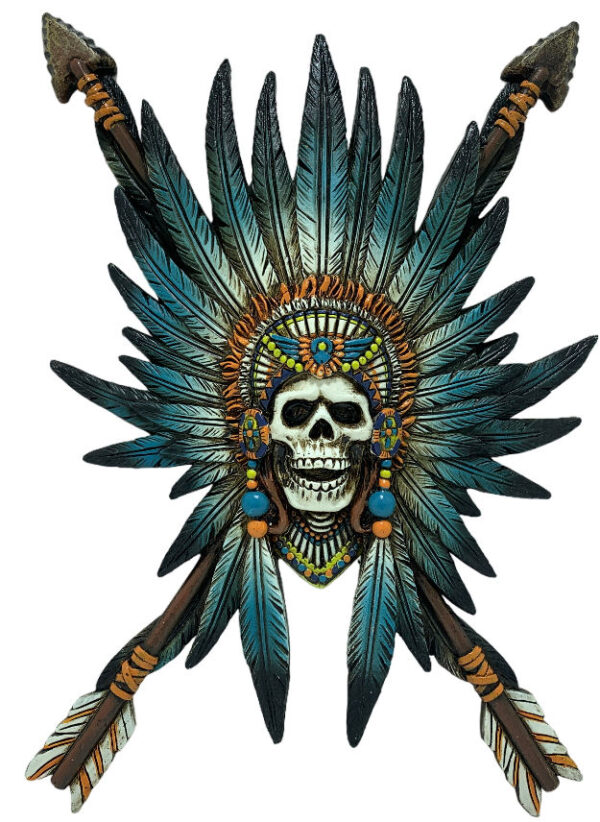 ra6044-skull indian w/ arrow plaque