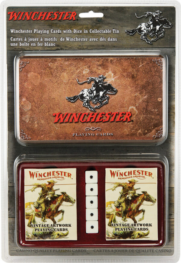 Cards and dice are an amazing pair and a must have for any game night. Includes 2 decks of casino quality playing cards and 5 dice, in an attractive felt lined gift tin with embossed lid. Attractively packaged in a full color clam pack. 54 different playing cards per deck.