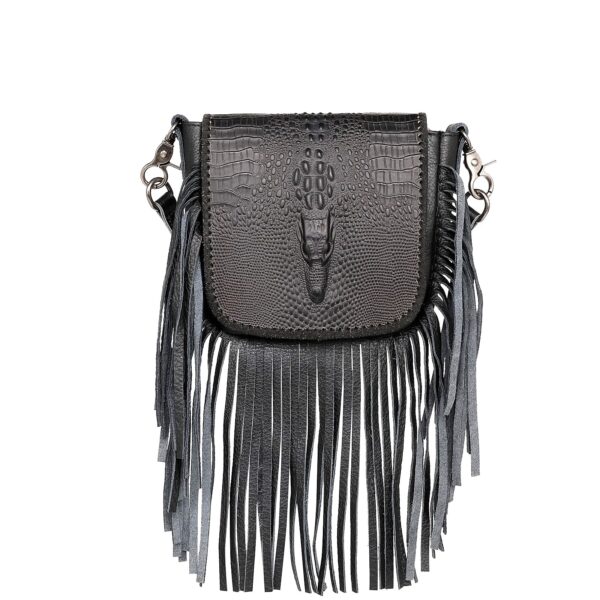 RLC-L160BK-Montana West Genuine Leather Crocodile Embossed Fringe Crossbody
