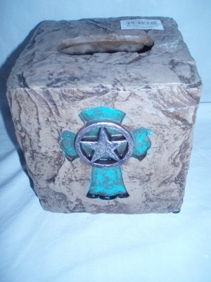 ROCK LOOK W/TURQUOISE CROSS TISSUE BOX