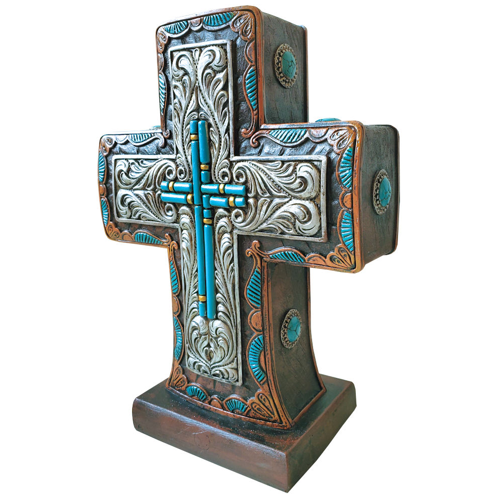 D14077-GOLD AND SILVER SCROLLS CROSS