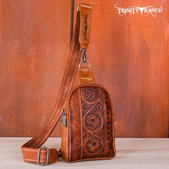 Made of PU leather, this western sling crossbody has: