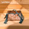 Trinity Ranch line by Montana West, this partial genuine leather crossbody has:
