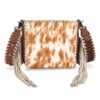 - Genuine cowhide hair-on front panel and PU leather detailing