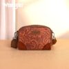 Made of PU leather and velvet-like texture polyester, this small crossbody has: