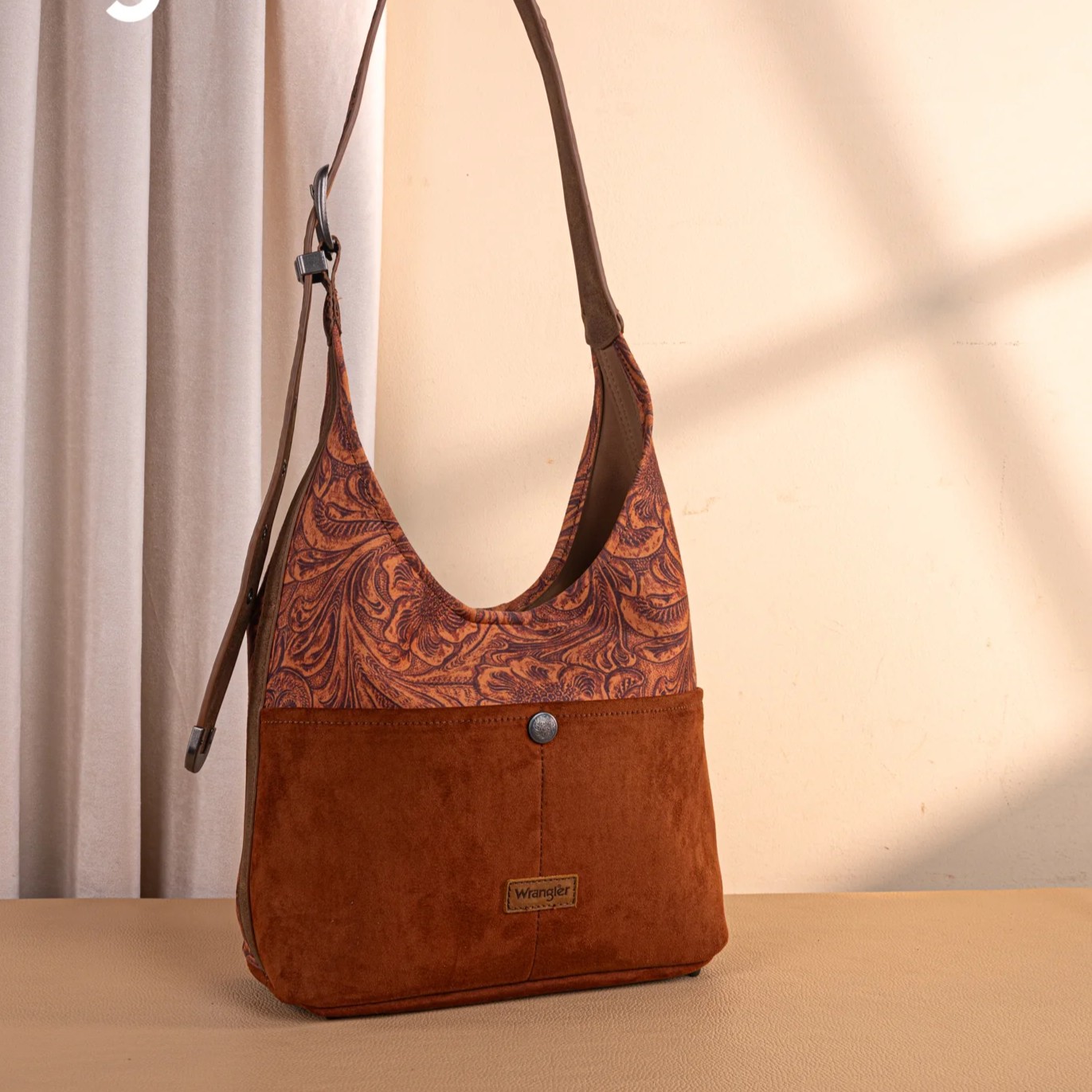 - Floral tooled with belt buckle on the adjustable shoulder strap