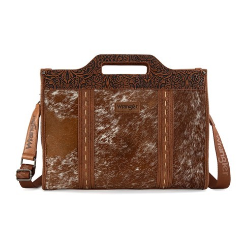 WG283-014BR- Wrangler Genuine Cowhide Carry-All Cowhide Large Tote /Crossbody – Brown