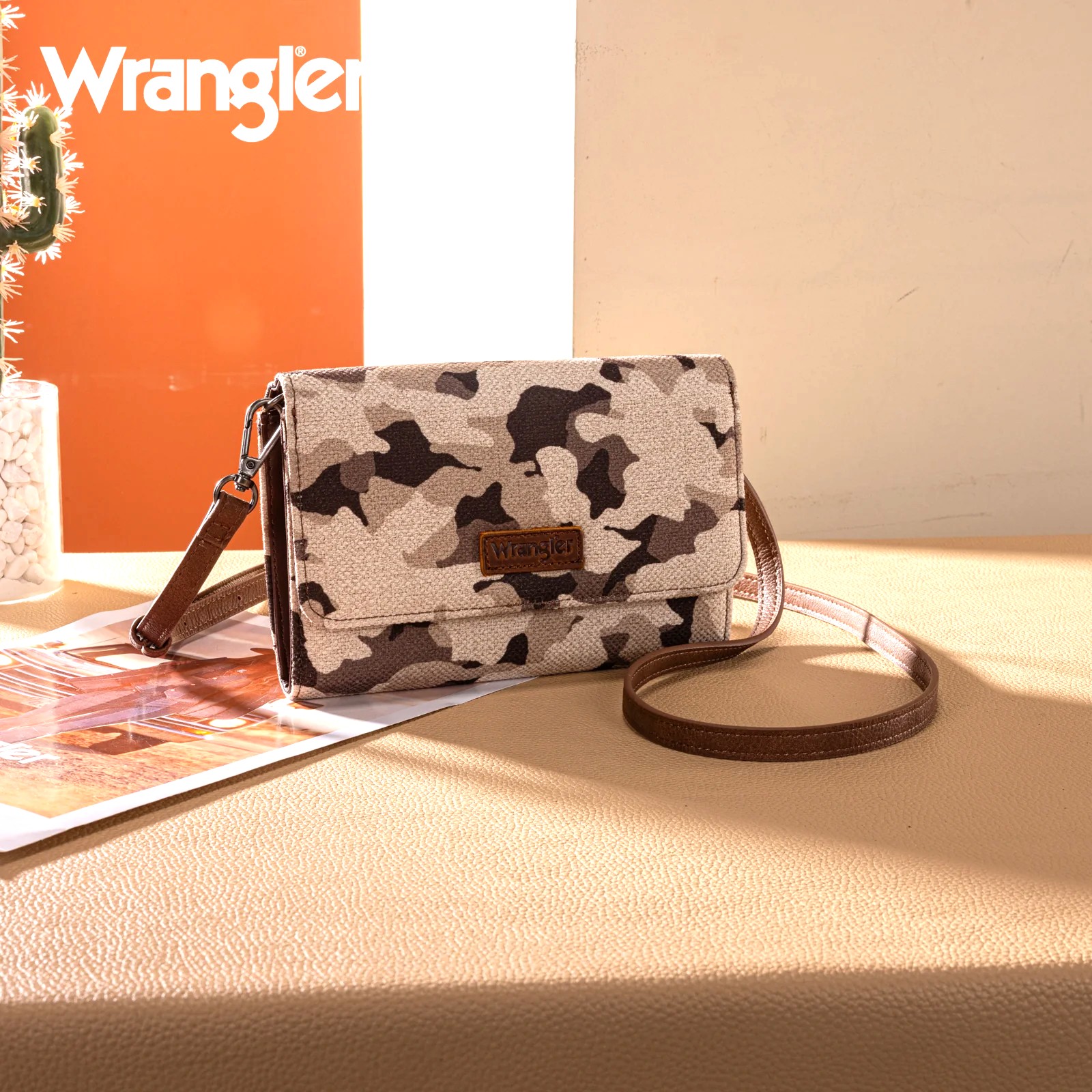 WG286-1833BR Wrangler Camo Print Canvas Clutch/Crossbody – Brown