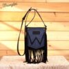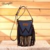 WG367-8360BK- Wrangler Leather Fringe Jean Denim Pocket Crossbody -Black