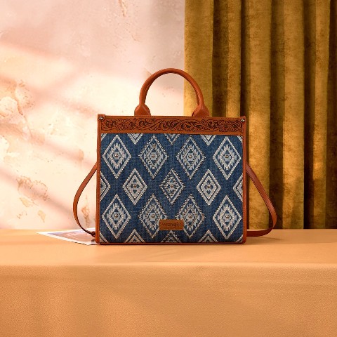 WG435-8119JN Wrangler Aztec Studded Denim Tote & Crossbody Bag – Jean