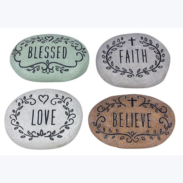 Y12503-RESIN INSPIRATIONAL HOME MESSAGE ROCKS, 4 AST.