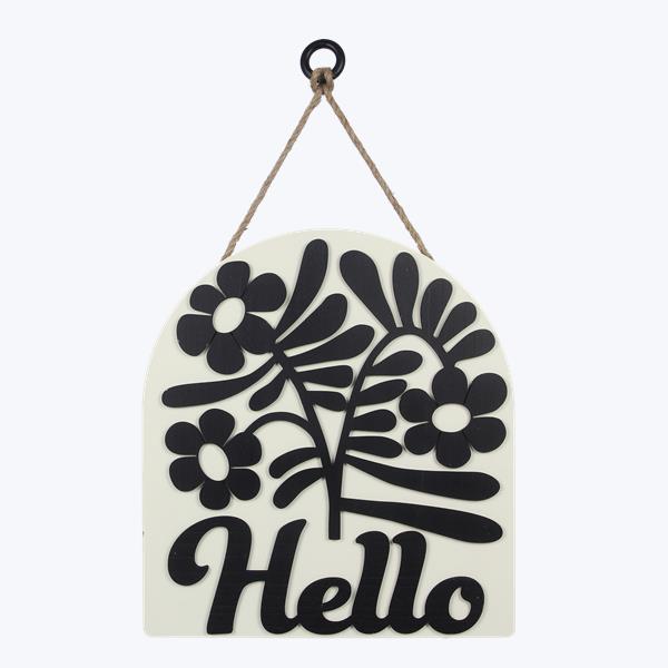 Welcome guests with this charming wood wall sign featuring a raised floral design and a welcoming “Hello” message. The elegant contrast of black floral motifs against a soft cream background adds a touch of sophistication to any door or wall. Crafted from durable wood, this stylish piece is perfect for adding a warm, inviting feel to your home decor.