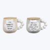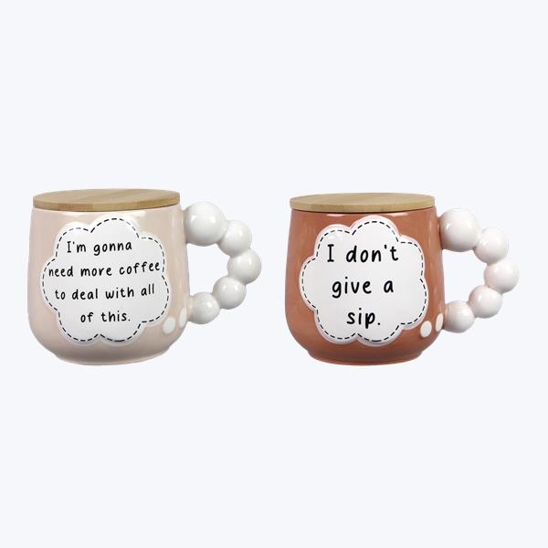 Add a touch of humor to your coffee routine with these Ceramic Humor Thought Bubble Mugs. Featuring playful messages and a unique bubble handle design, these mugs come with a bamboo lid that doubles as a coaster. Perfect for gifting, they are crafted from durable ceramic and come in soft pink and warm orange hues.