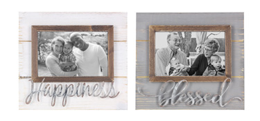 - Includes a set of two wood photo frames.