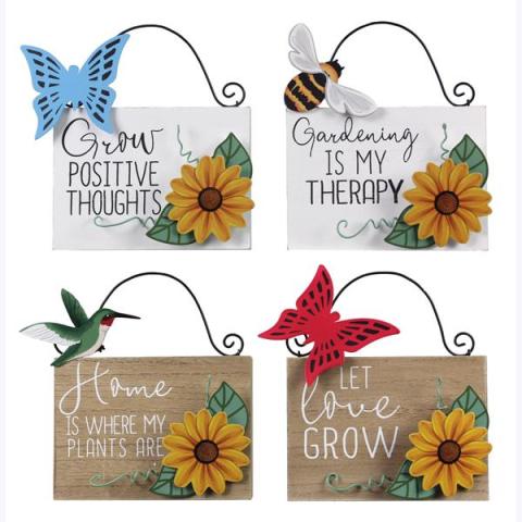 - Wood Garden Tabletop Sign With Metal Butterfly, Bee, Hummingbird Accent That Comes in 4 Assortment
