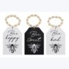 - Wood honey bee tag sign attached to blessing beads chain that comes in 3 assortments