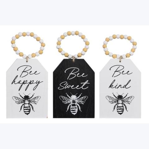 Add seasonal charm to your decor by displaying this bee-detailed sign with sweet message attached to blessing beads chain.