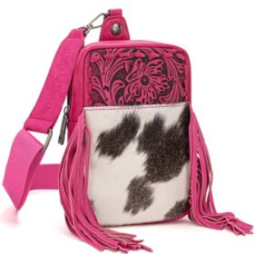 TR162G-2001HPK-Trinity Ranch Hair-On Cowhide Fringe Concealed Carry Crossbody Bag – Hot Pink