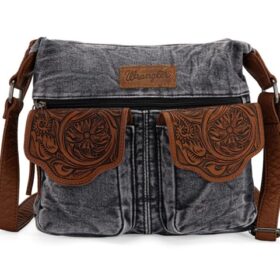WG44-8360CF- Wrangler Leather Fringe Jean Denim Pocket Crossbody – Coffee