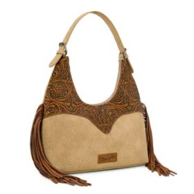WG265-3027KH-Wrangler Fringe Floral Tooled Hobo Bag-Khaki